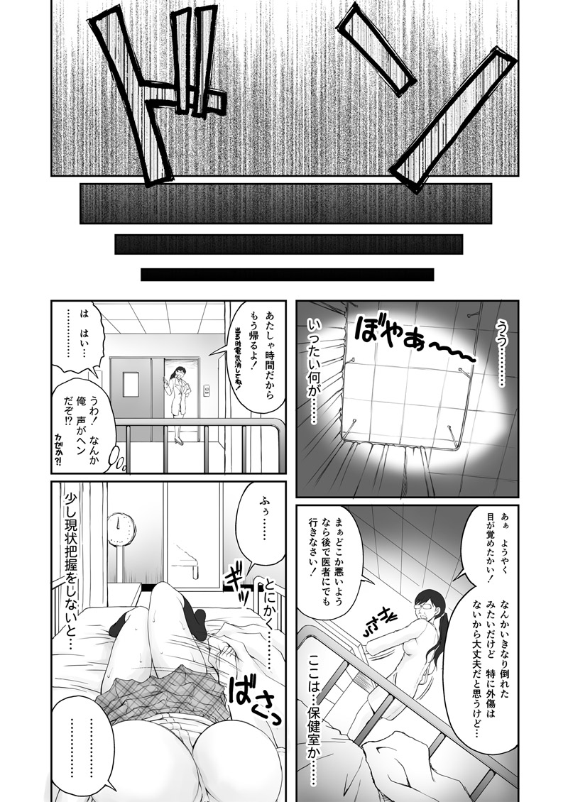 ずっと好きだった彼女の身体…そこは誰もいない保健室。ちょっとだけ…そんな思いでその身体でオナニーを始めてしまう主人公。だが予想以上のその快感に手が止まらなくなってしまい………。