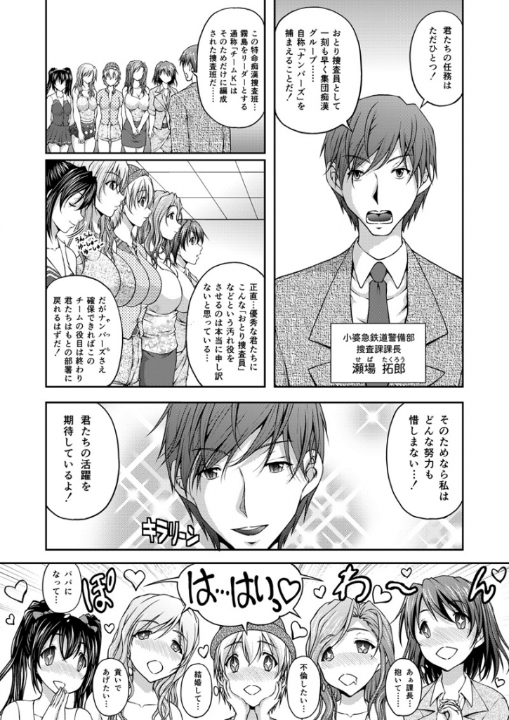 ターゲットにした女性を集団で痴漢した後、自分達の犯罪を誇示するかのように女性の胸に「烙印」を押して回るという大胆不敵な集団痴漢グループ「ナンバーズ」が世間を騒がせていた。そしてヤツらを逮捕すべく、選りすぐりの精鋭美女が集められた。それが「特命痴漢捜査班・チームK」である。彼女らは自らの肉体をエサにおとり捜査を使ってナンバーズを捕まえるのが使命なのだが、捜査の条件として「ナンバーズに面が割れないように、通常の痴漢は捕まえてはいけない」という厳しいルールがあった。